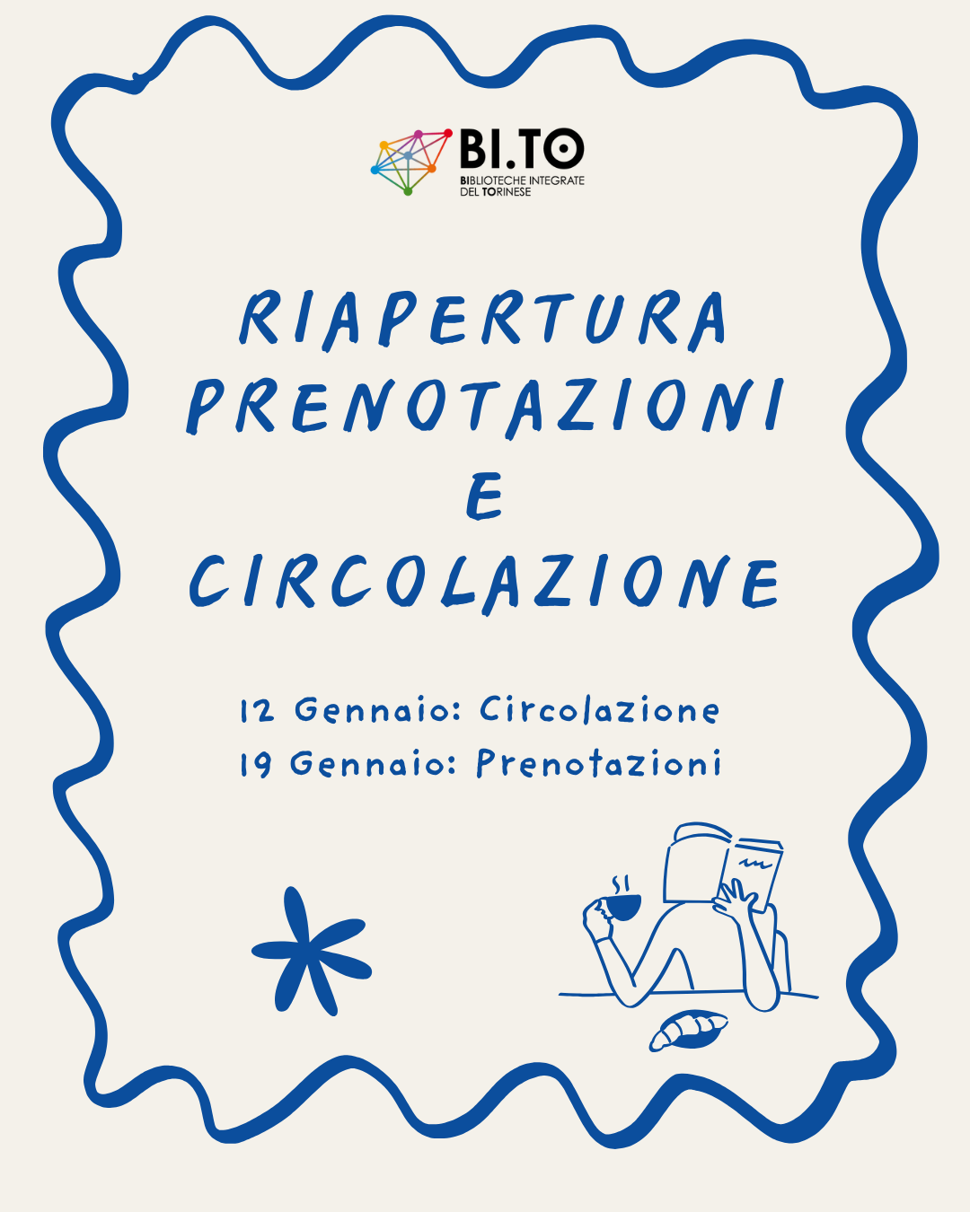 Ricordiamo infine che la circolazione libraria ripartirà il 12 gennaio, mentre le prenotazioni verranno riaperte il 19.