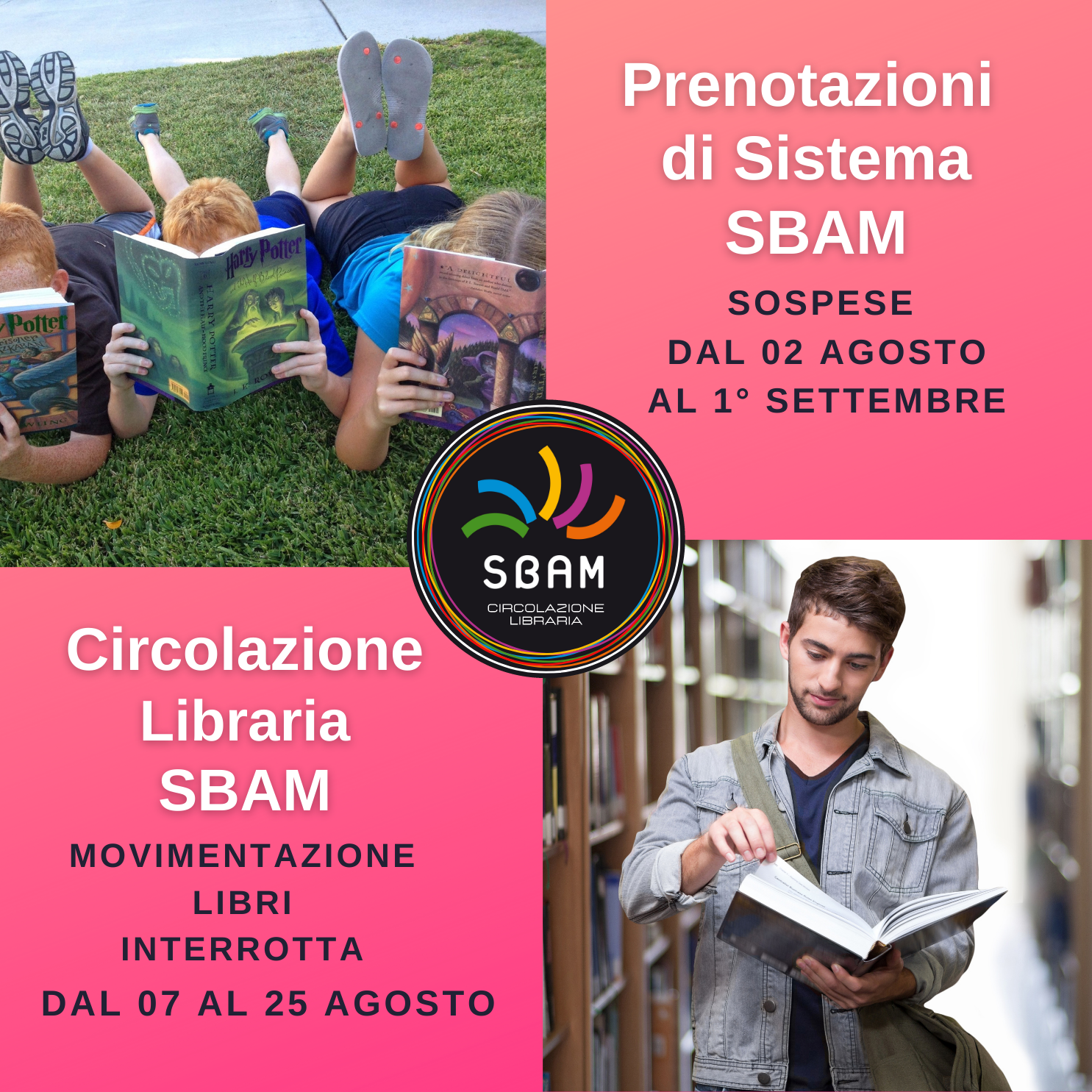– Le prenotazioni interbibliotecarie SBAM saranno sospese dal 2 agosto al 1° settembre