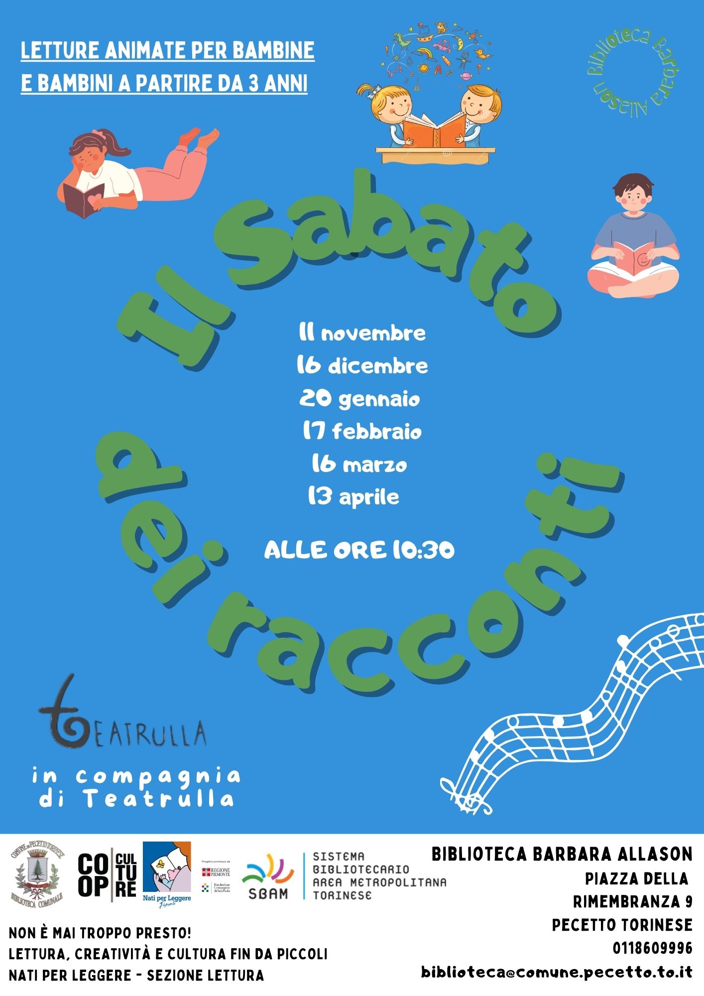 Info: tel. 0118609996 - biblioteca@comune.pecetto.to.it