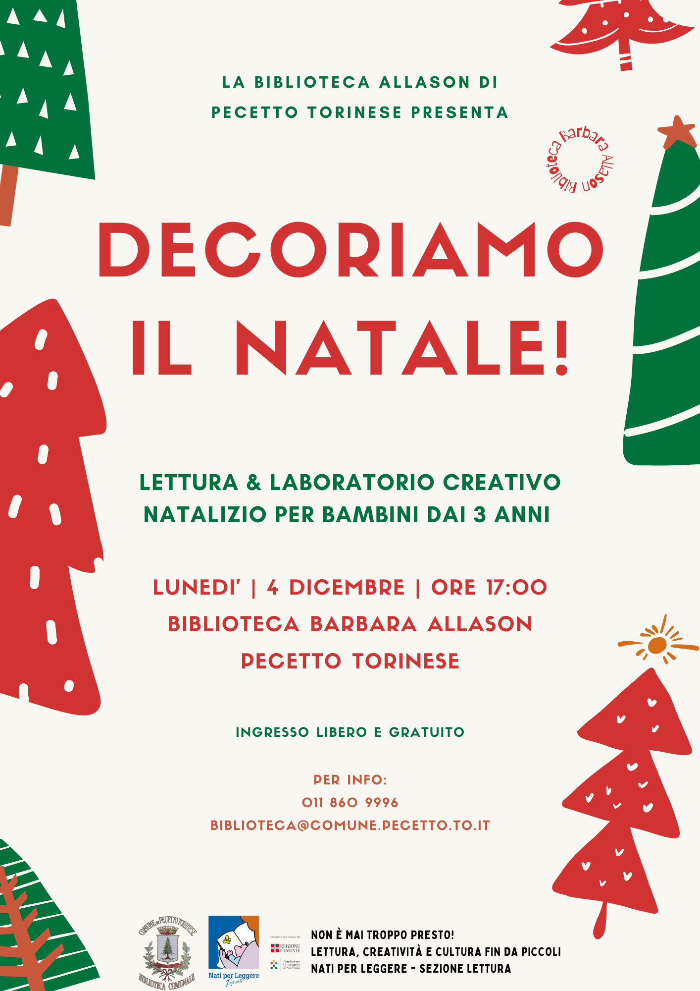 Lunedì 4 dicembre, alle ore 17, tutte le bambine e i bambini a partire dai 3 anni sono invitati, insieme ai loro grandi, per trascorrere qualche ora di divertimento ideando addobbi natalizi.