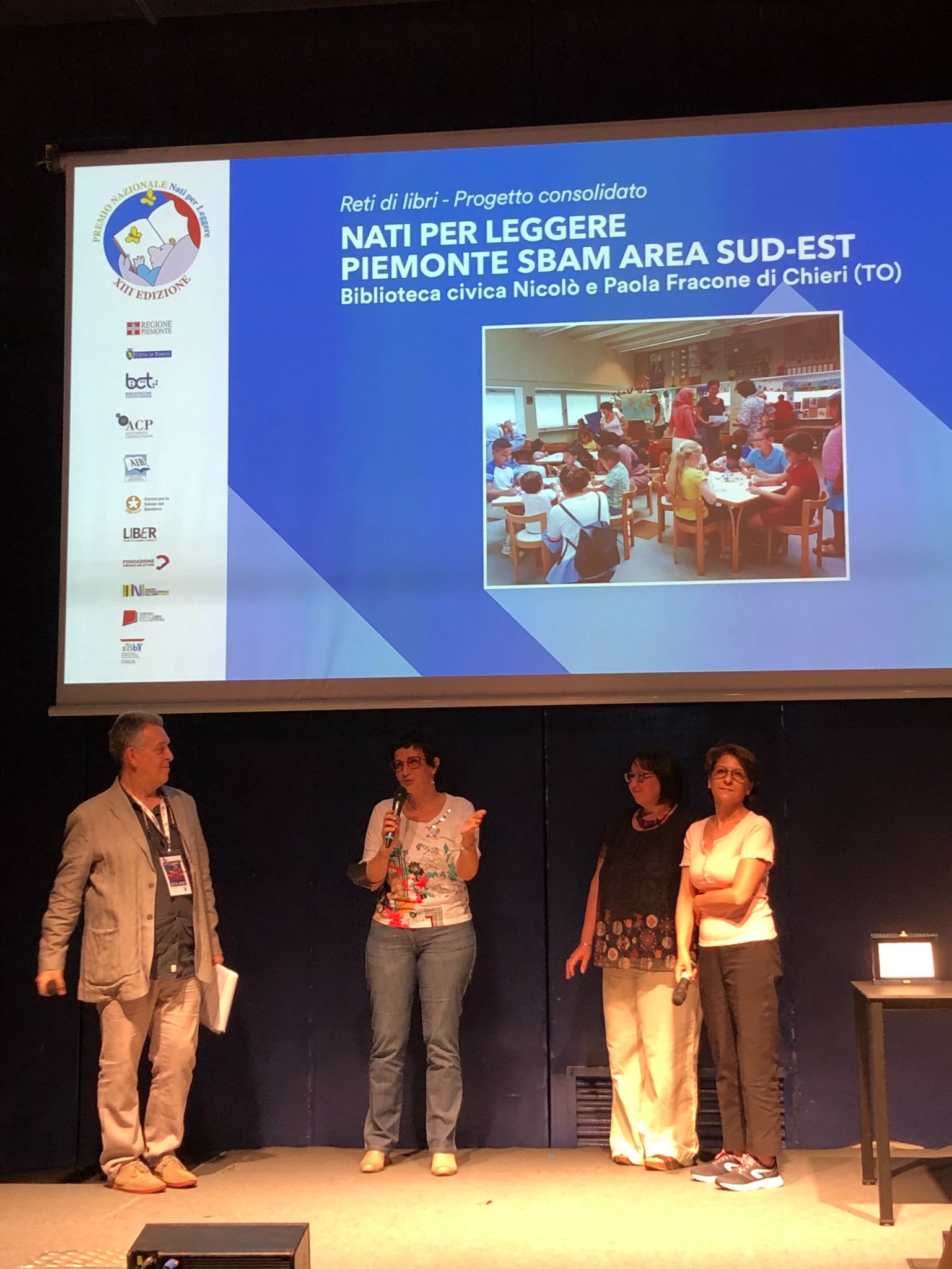 A ritirare lunedì il premio al Salone Internazionale del Libro l'Assessora alla cultura del Comune di Chieri Antonella Giordano, la direttrice della Biblioteca di Chieri (capofila dell’area Sbam sud-est) Silvia Basso e Dorella Apa, bibliotecaria referente del nostro progetto NPL.