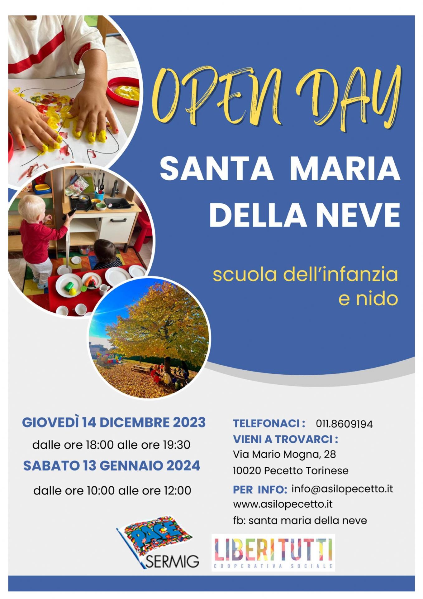Giovedì 14 dicembre 2023 dalle ore 18,00 alle ore 19,30 e Sabato 13 gennaio 2024 dalle ore 10,00 alle ore 12,00 Il Sermig Arsenale dell'Armonia e LiberiTutti Cooperativa Sociale  OPEN DAY Santa Maria della Neve - Scuola dell'infanzia e Nido ...